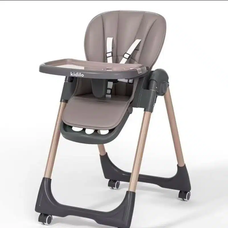Ce modèle de chaise haute Kidilo évolutive, utilisable à partir de 6 mois en position couchée ou bien allongée, elle a plusieurs niveaux de hauteur et inclinaison, roues inclus, pliage pratique pour un minimum d’espace